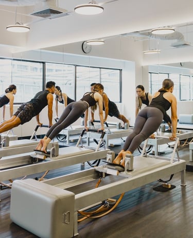 Semi-private Pilates session for two, combining personalised attention with shared motivation and energy.